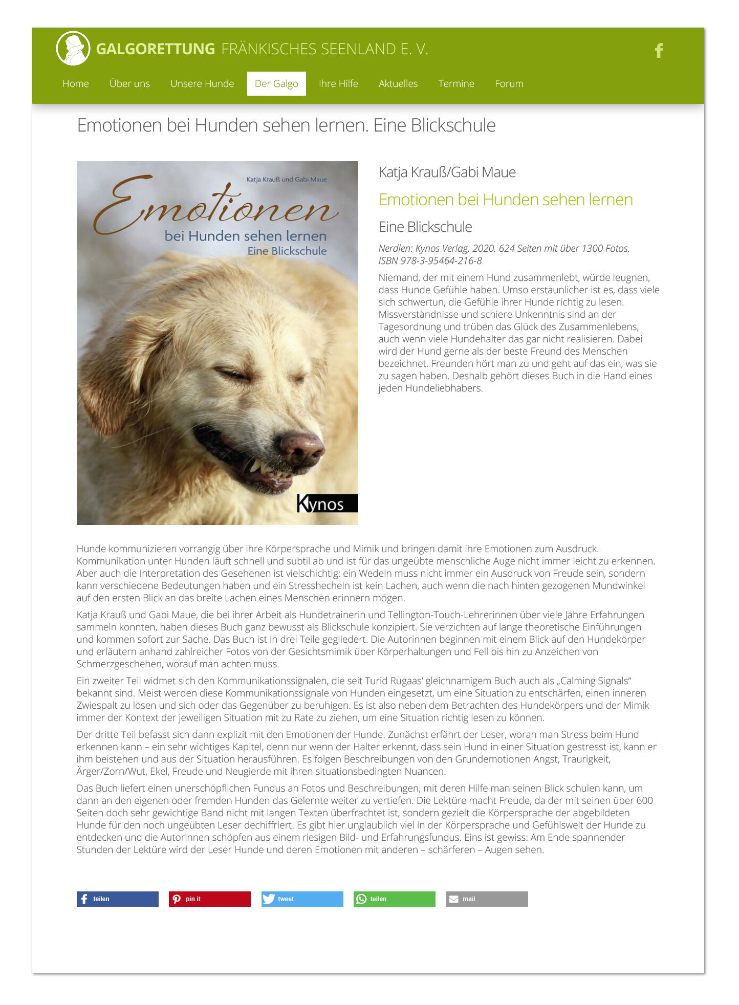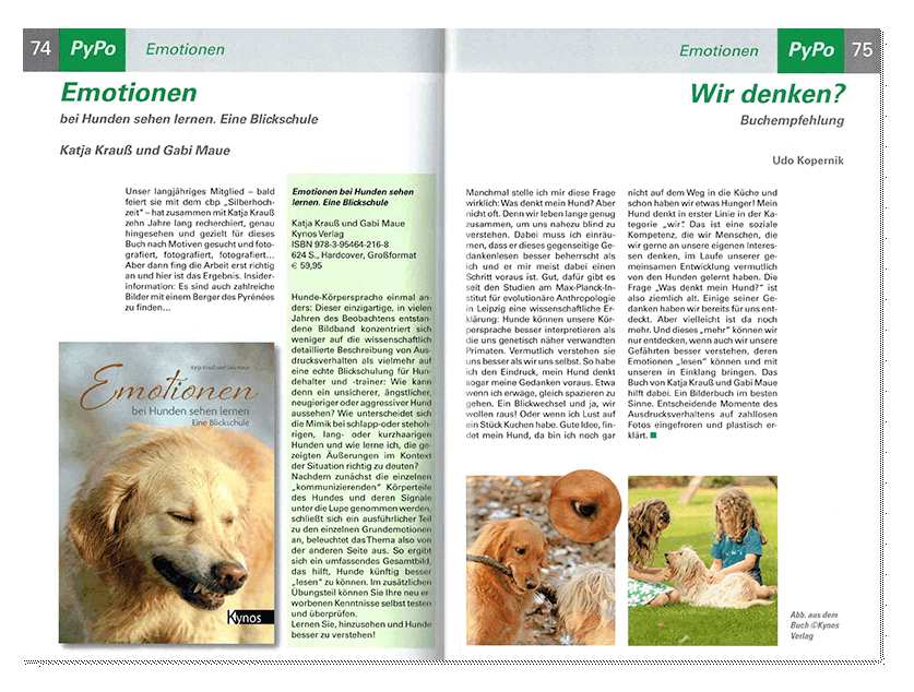 "Das Buch enthält 1348 Fotos mit detaillierten Legenden, sodass der Blick auf das Wesentliche gelenkt wird. Und in der Tat stellt man beim Lesen schnell fest, wie viele Details sichtbar sind, wenn man um sie weiß. [...] um es mit den Worten von Gisela Rau, der Geschäftsführerin des Kynos Verlags zu sagen: Ihr werdet Hunde danach mit anderen Augen sehen!"